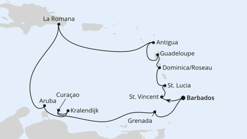 | 22 | Bridgetown/Barbados | 08:00 Uhr | 21:00 Uhr |